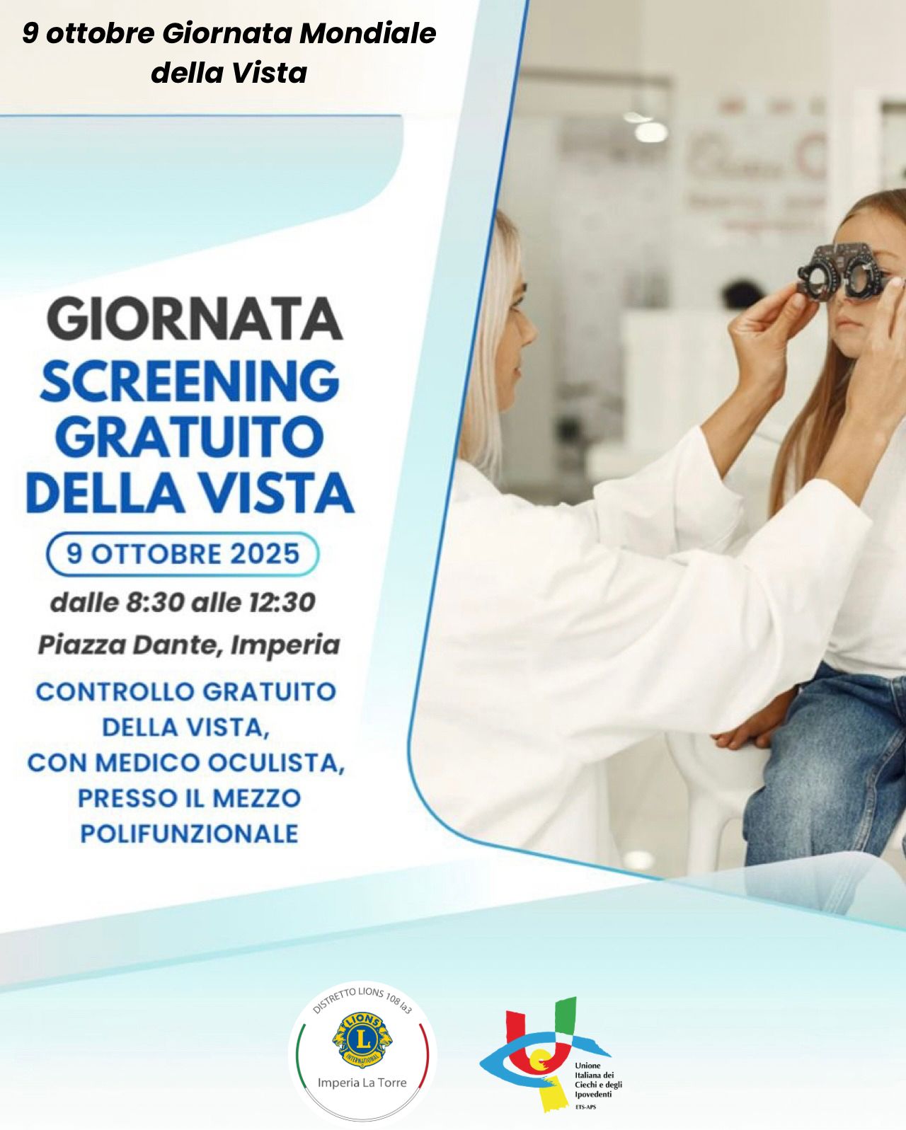 Il Lions Club Imperia La Torre In occasione della Giornata mondiale della vista organizza SCREENING GRATUITO DELLA VISTA Giovedì 9 ottobre in piazza Dante a Imperia sarà possibile […]