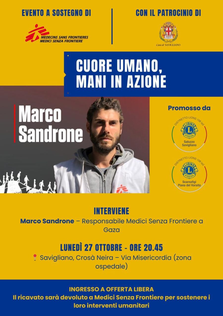 I Lions Club Saluzzo Savigliano e Scarnafigi Piana del Varaita Invitano alla serata con relatore CUORE UMANO, MANI IN AZIONE Lunedì 27 ottobre, alle