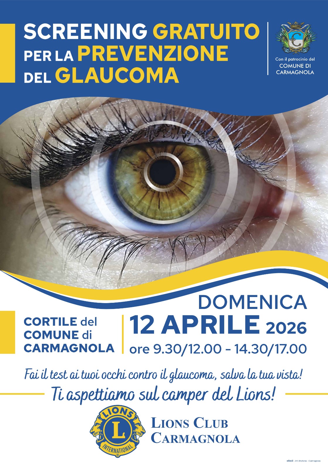 Il Lions Club Carmagnola organizza per domenica 12 aprile, nel cortile del Comune, una giornata di test oculistici gratuiti contro il glaucoma.