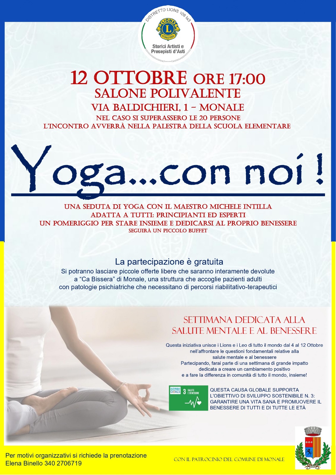 Per garantire una vita sana e promuovere il benessere di tutti e di tutte le età domenica 12 ottobre, alle ore 17, viene organizzata “Yoga… con noi!”, una seduta adatta a principianti ed esperti, a cui seguirà un piccolo buffet.