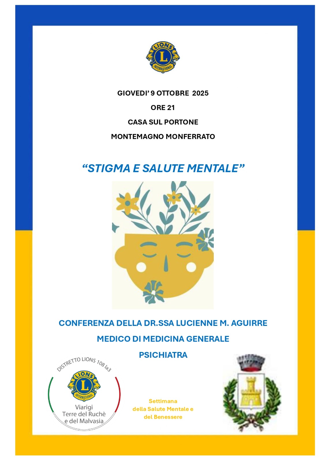 Giovedì 9 ottobre, presso la Casa sul portone (vicolo Primo) a Montemagno Monferrato (AT), è in calendario la conferenza “Stigma e salute mentale”.