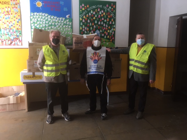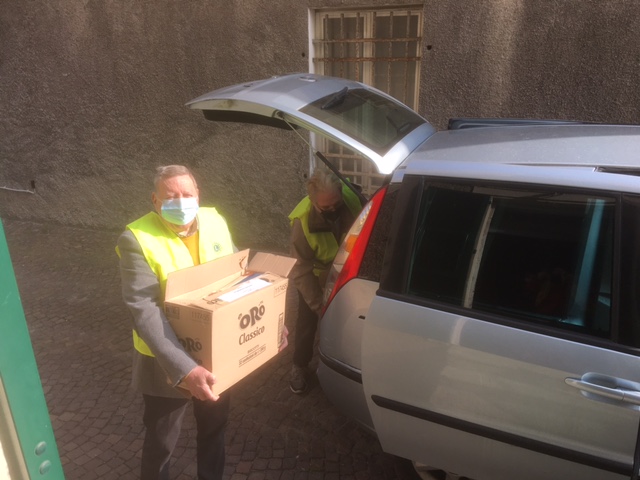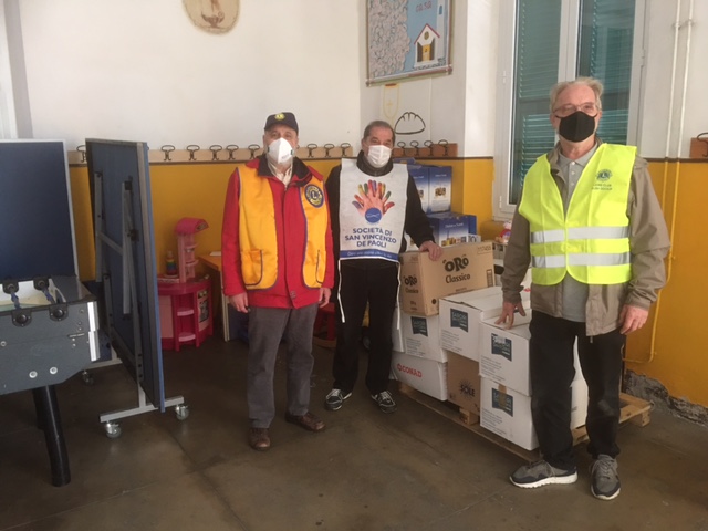 Gli alimenti, ritirati dai soci Flavio Beltrami, Mario Mazzini e Vilder Vanz e consegnati nella stessa giornata all’Associazione S. Vincenzo, nelle mani del responsabile Sig. Angelo Vezzolla, saranno distribuiti immediatamente alle famiglie.