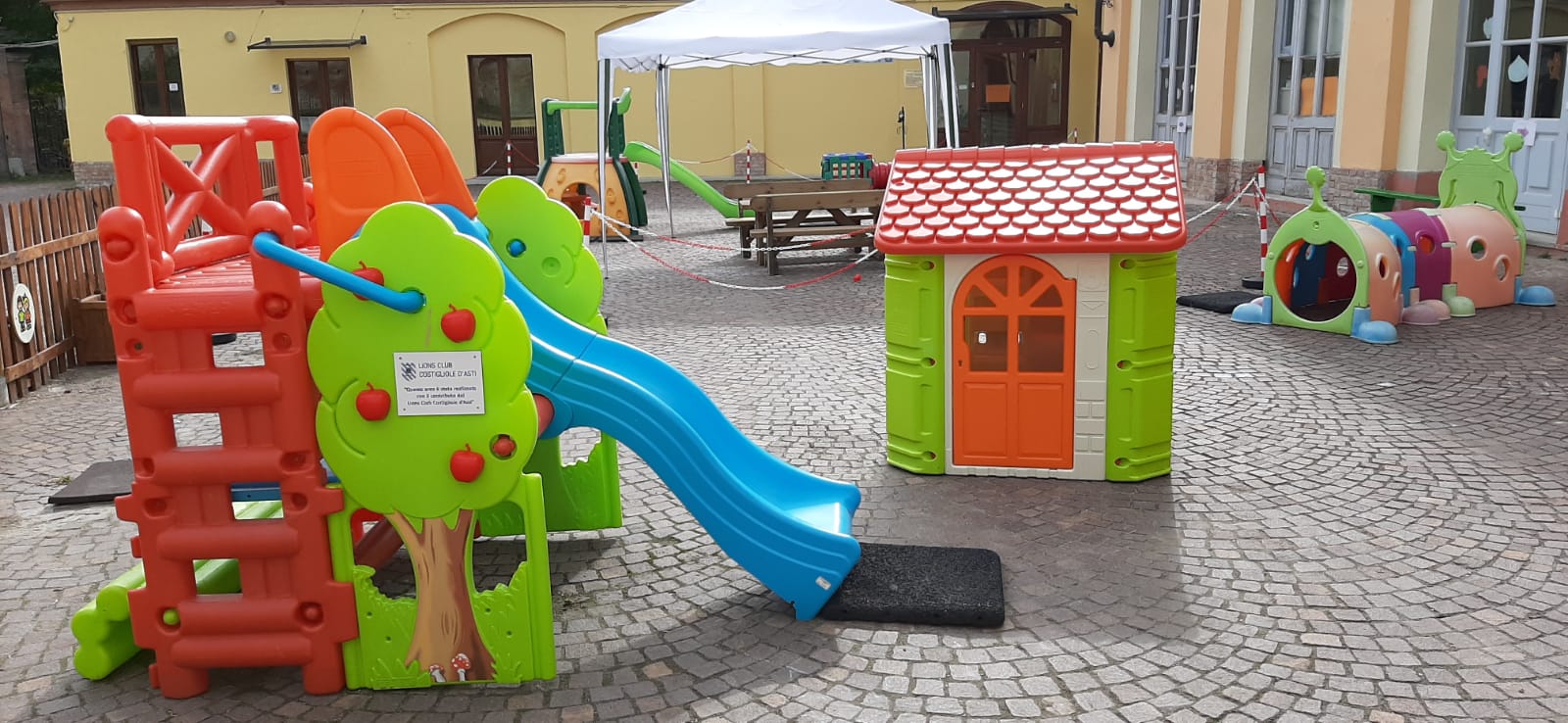 In previsione del corrente anno scolastico, in ottica antiCovid, il Dirigente dell’Istituto Comprensivo, professor Claudio Thoux, ha evidenziato la necessità di potenziare l’ area giochi all’ aperto per i 166 alunni più piccoli delle Scuole dell’Infanzia di Costigliole, Capoluogo e Boglietto, e di Castagnole delle Lanze: alla sua richiesta il Lions Club Costigliole d’ Asti ha risposto prontamente contribuendo alla realizzazione di questi spazi determinanti per l’ attività didattica.