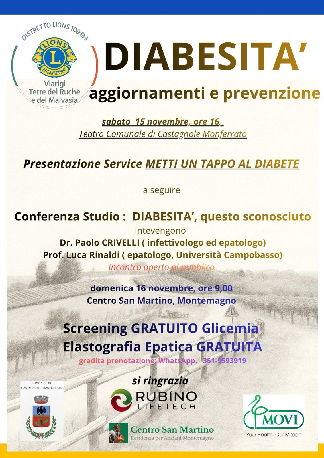 La Diabesità è il neologismo coniato dall’Organizzazione Mondiale della Sanità per sottolineare la stretta associazione tra diabete e l’obesità. Per conoscere meglio questa emergenza sanitaria, sabato 15 novembre, alle ore 16, presso il Teatro Comunale di Castagnole Monferrato (AT) viene presentato il service METTI UN TAPPO AL DIABETE, a cui seguirà la conferenza studio “DIABESITÀ, questo sconosciuto”.