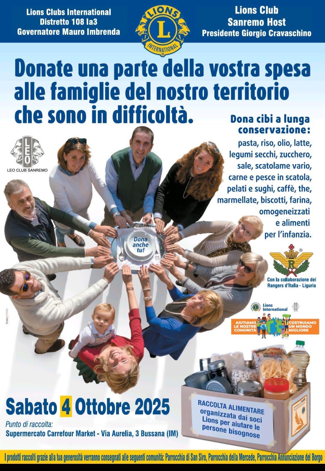 Sabato 4 ottobre, presso il Supermercato Carrefour Market (via Aurelia, 3) a Bussana (IM) ci sarà una raccolta alimentare per aiutare le persone bisognose. La cittadinanza è invitata a donare una parte della spesa alle famiglie del territorio che sono in difficoltà.