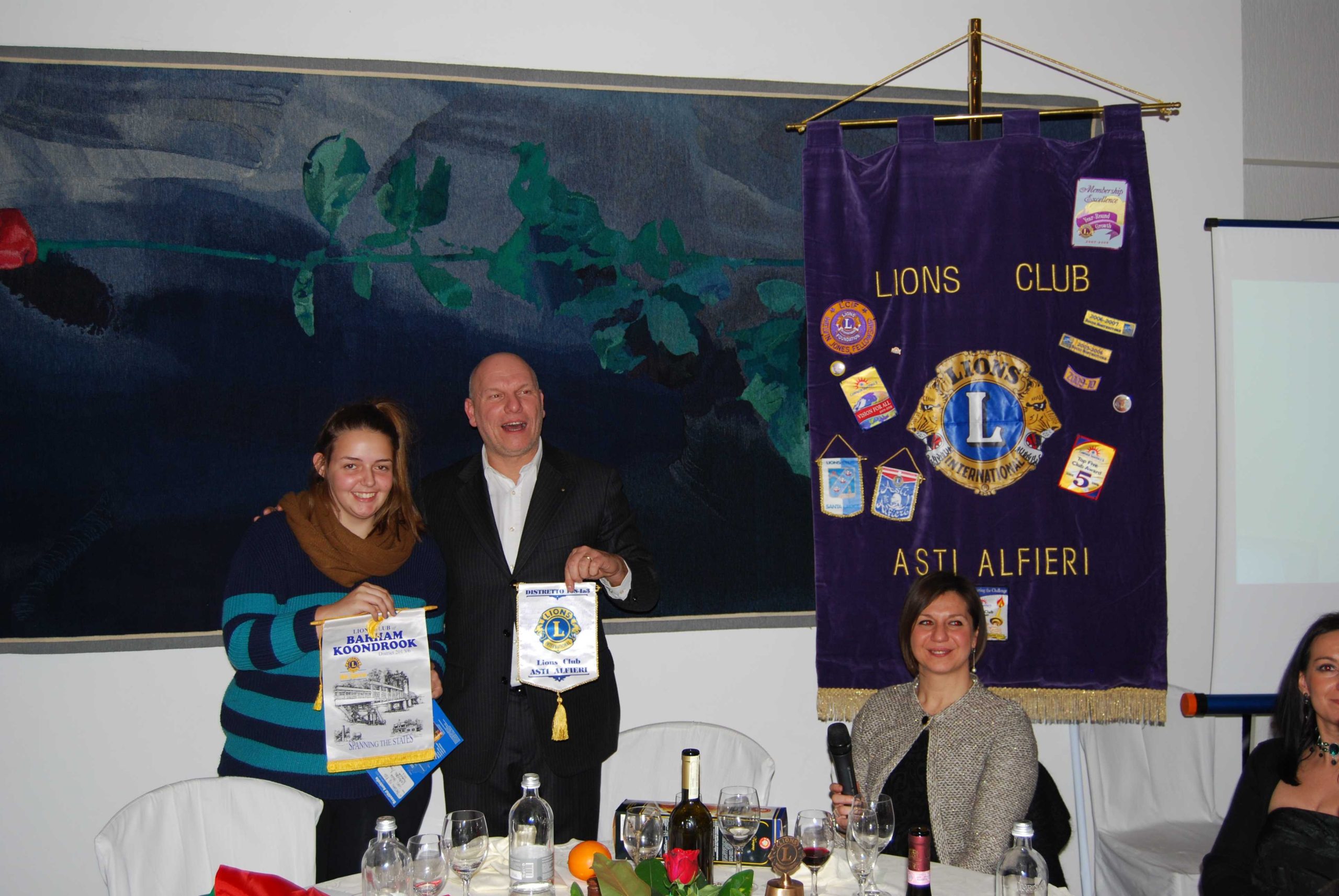 Special guest  della serata Suszanna Aertssen, una sedicenne australiana, ospite del nostro socio Antonio Moscato, ed inserita nel programma di scambi giovanili internazionali dei LCI. Il club di appartenenza è quello di Barham Koondrook del distretto 201V6 (Australia). Con lei è avvenuto lo scambio dei labaretti dei club e dei rispettivi DG  (Gianni Carbone per il 108Ia3 e Tom Little per il MD201V6) e la presentazione della sua cittadina.